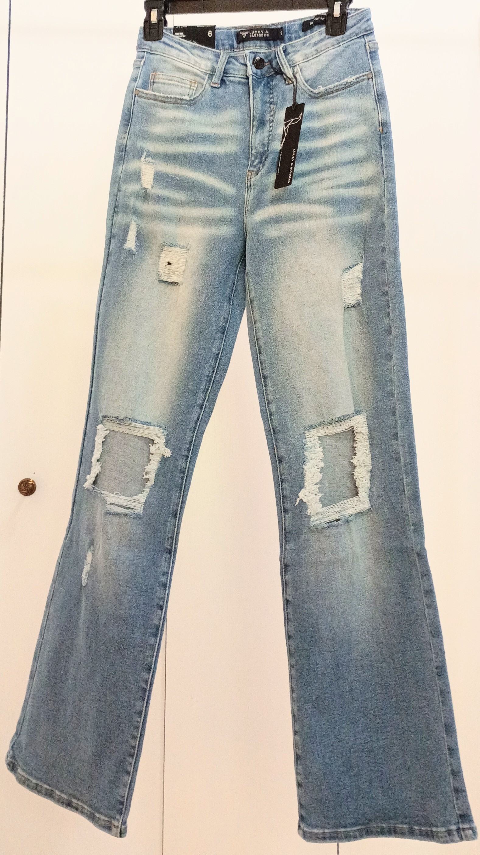 Lucky & Blessed Light Wash High Rise Distressed Boot Cut Jeans