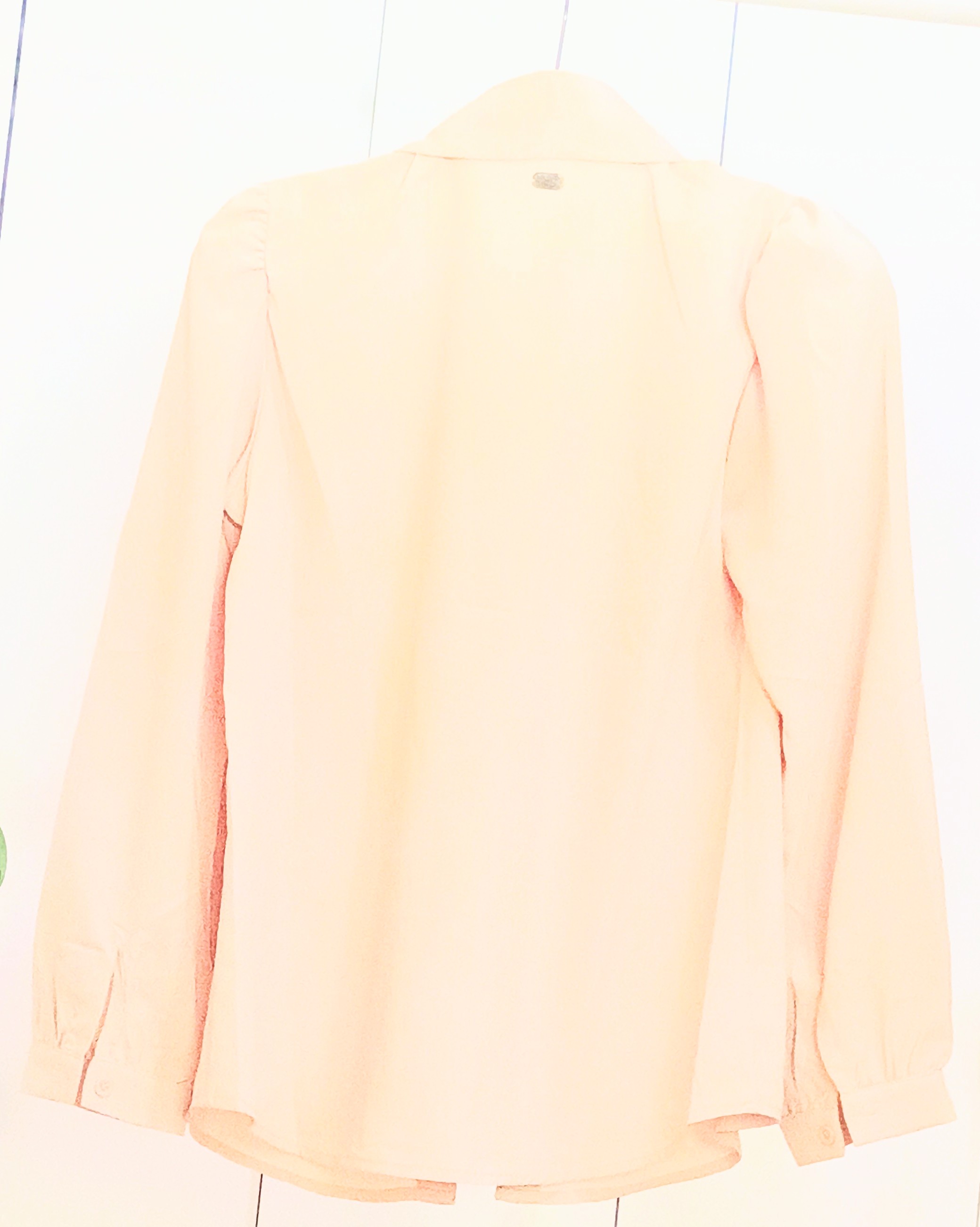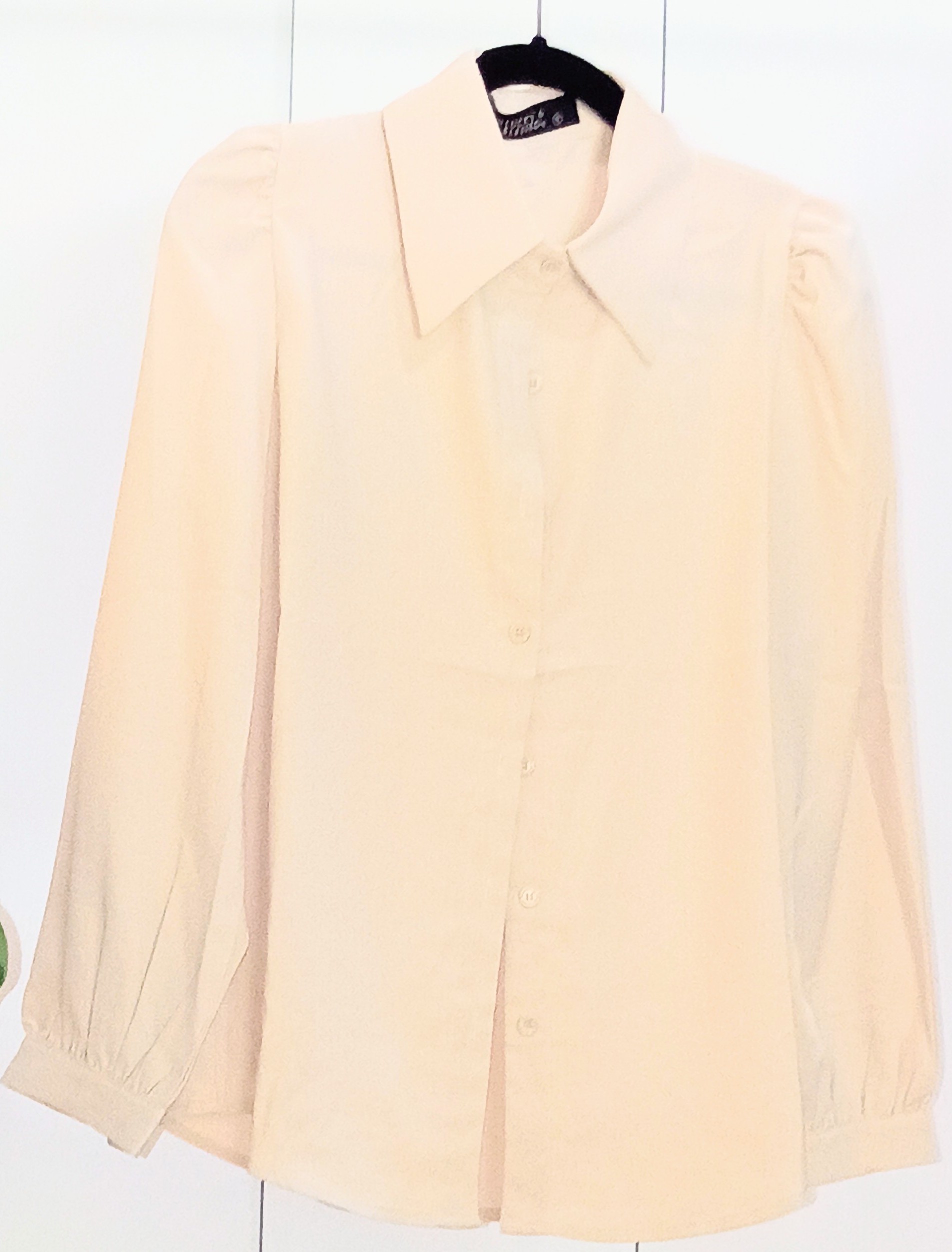 Cream pearl snap puff sleeve long sleeve shirt